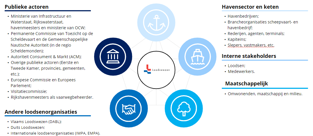 De stakeholders van het Loodswezen zijn onder te verdelen in vijf groepen.